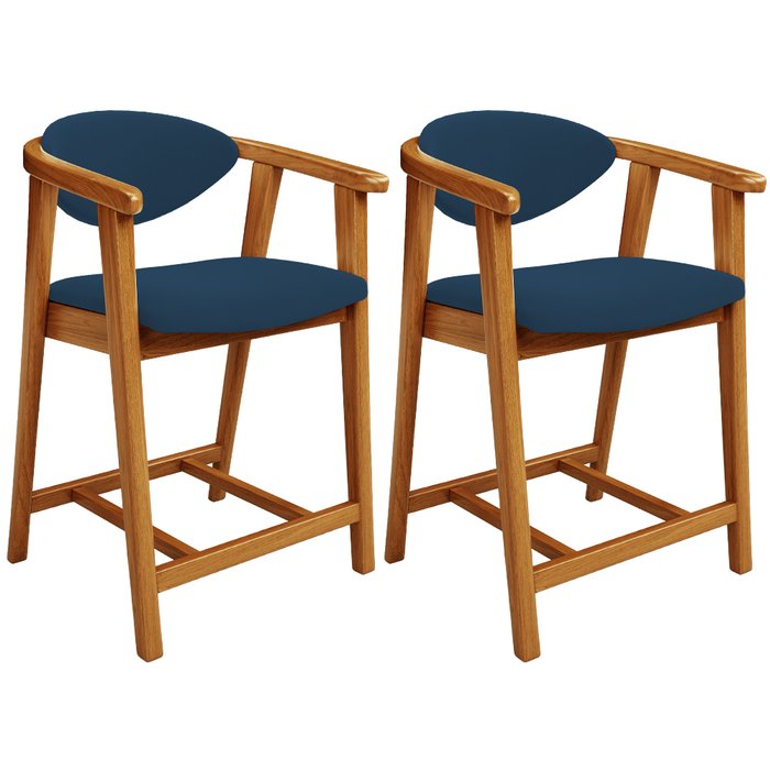 Kit 02 Banquetas Baixa para Cozinha Sala Jantar Bancada Cecília L02 Suede Azul Marinho - Lyam Decor
