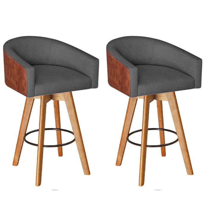 Kit 02 Banquetas Tamboretes Luiza com Base Giratória de Madeira Moderna Elegante Sintético Nozes Lin Cinza Escuro