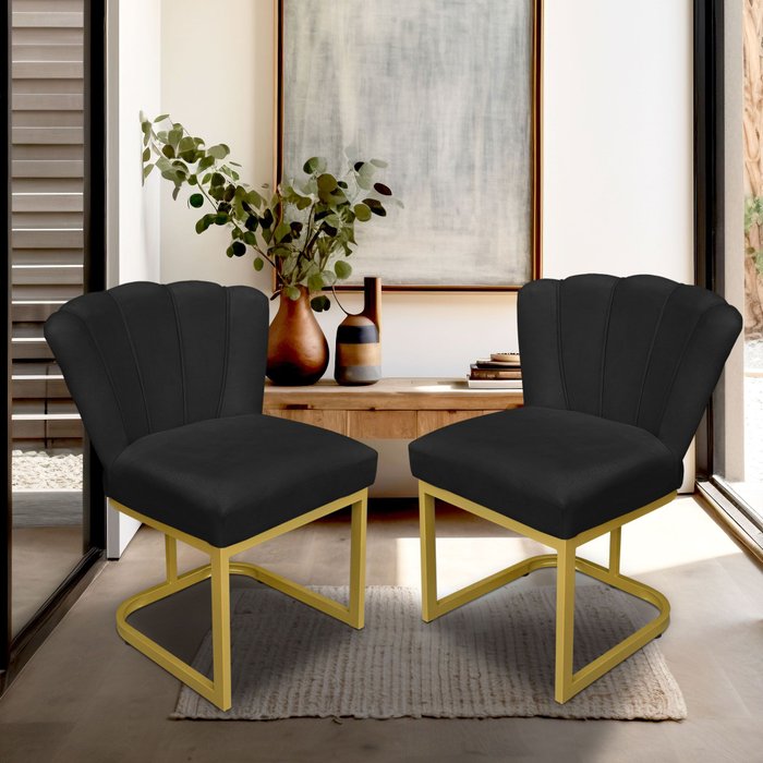 Kit 02 Cadeira Escritório/recepção Flor - Base Ferro Dourado - Preto Preto
