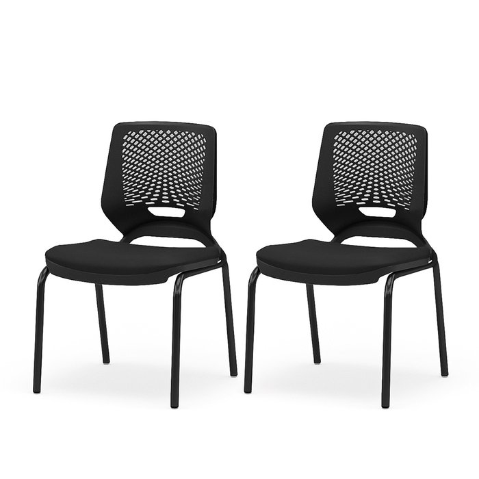 Kit 02 Cadeiras Fixa Aproximação Beezi Base Preta Encosto Preto e Assento em Material Sintético (cou