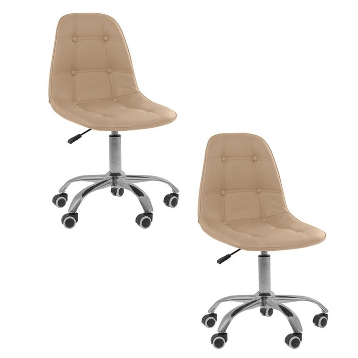 Kit 02 Cadeiras Office Eiffel Botonê Ajustável Base Giratória Bege