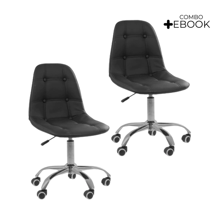 CADEIRA OFFICE EIFFEL BOTONÊ AJUSTÁVEL BASE GIRATÓRIA Para quem busca dar vida e sofisticação ao ambiente e conforto a Cadeira Office Eiffel Botonê é uma ótima opção. Ela se adapta a qualquer ambiente e é forte tendência em decoração. Projetadas para combinar com qualquer ambiente que você desejar usá-las: para sala de jantar, cozinha, no quarto ou escritório, áreas de lazer, e ambientes comerciais. A escolha de uma cadeira adequada é muito importante para evitar futuras lesões. Com esta cadeira você terá o conforto é o bem-estar que precisa ao longo do seu dia. Além disso, você pode colocá-la em qualquer lugar da sua casa ou oficina, pois o seu design se adapta a vários ambientes. Dê um toque mais moderno aos seus espaços! Conforto em todos os momentosO seu encosto reclinável lhe permitirá regular os diferentes pontos de inclinação, bem como deixá-la em posição livre para balançar durante as pausas e descansos. Ajuste-a a sua medidaCom seu ajuste de altura, você poderá fixar a posição de seu torso em relação à mesa de trabalho e assim obterá uma cadeira mais confortável ao nível de suas necessidades. Mantenha-se em movimentoAs rodas permitirão a você mover e limpar facilmente o seu espaço. Você será capaz de movê-la sem dificuldade quando precisar.Além disso, sendo giratória, permitirá que você gire o assento 360º sem a necessidade de mudar de posição ou se mover de onde você está.