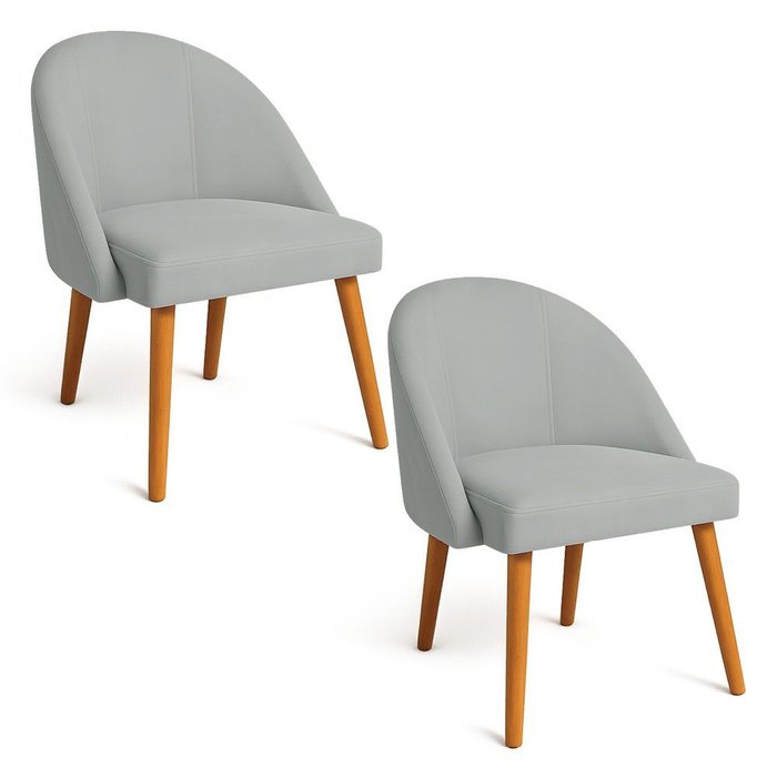 Kit 02 Cadeiras Poltrona de Jantar Luna Suede Cinza Pés Palito Castanho - Pallazio