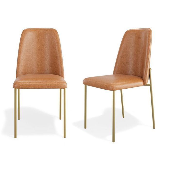Kit 02 Cadeiras Sala de Jantar Lior Encosto Estofado Base Dourada Couríssimo Whisky - Abmaza