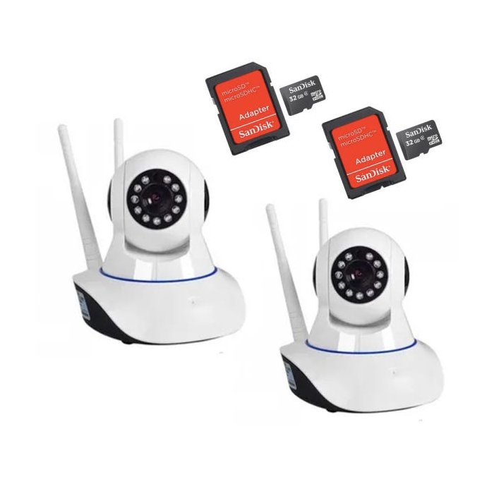 Câmeras Wifi ideais para o monitoramento da sua casa ou comércio, já que oferece uma conexão wireless. Esse Kit de 02 Câmeras é perfeito pra quem busca um Sistema de Segurança Eletrônica de qualidade e simplificado - Incluso 02 cartões SD sandisk de 32 GB para gravação das imagens.