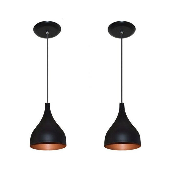 Kit 02 Lustres Luminarias Pendentes - Modelo Funil - Preto com Cobre