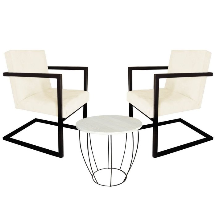 Kit 02 Poltrona Alpha Corino Bege E Mesa de Centro Redonda Milla - Ruotolo Decor
