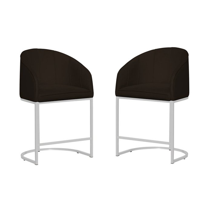 Kit 02 Poltrona Banqueta Decorativa Estofada Tecido Suede Base Metal Branca - Estopar Poltrona Banqu