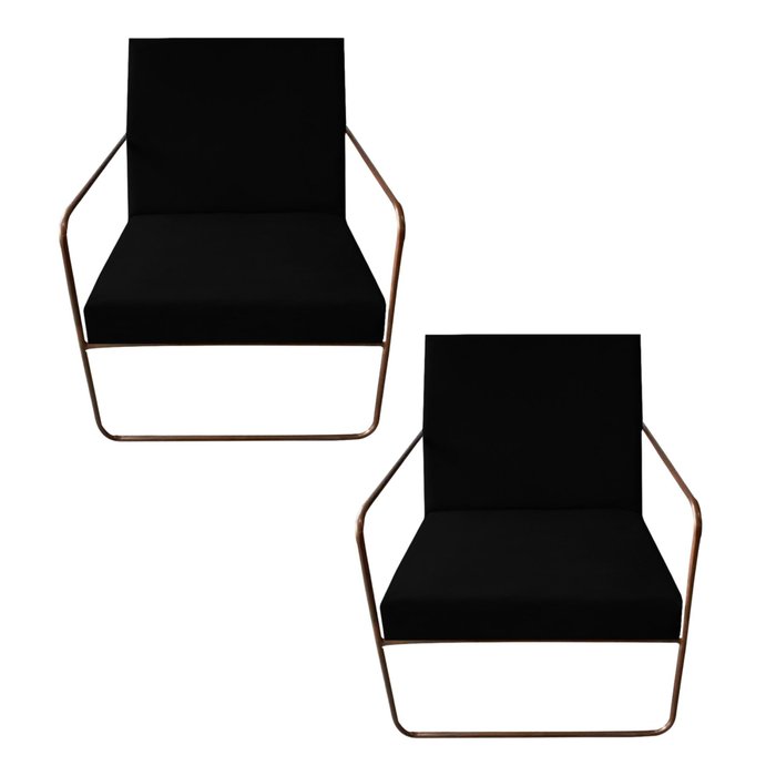 Kit 02 Poltrona Cadeira Angra Decorativa Sala Aramado Bronze Corino Preto - Ruotolo Decor