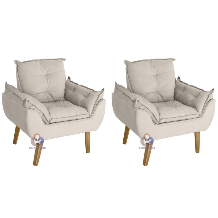 Kit 02 Poltrona/Cadeira Decorativa Glamour Com Pés Quadrado Bege - Poltrona