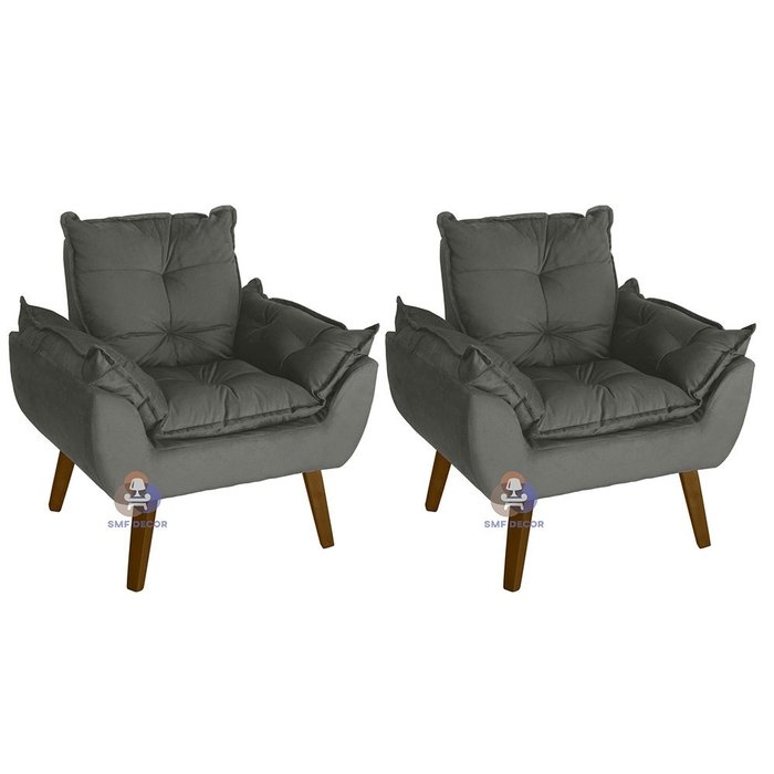 Kit 02 Poltrona/Cadeira Decorativa Glamour Com Pés Quadrado Chumbo - Kit poltrona