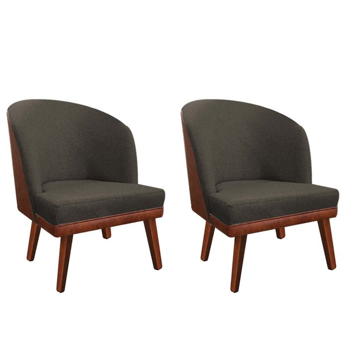 Kit 02 Poltrona Cadeira Sophia Pé Trapézio Compose Courissimo Nozes Linho Marrom - DOMINIC DECOR
