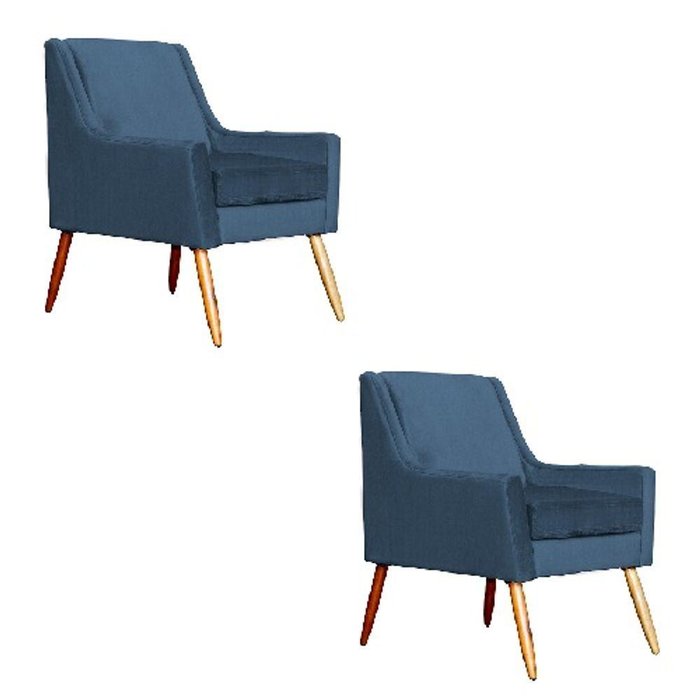 Kit 02 Poltrona Decorativa Ariane Pés Palito Sala Suede Azul Royal - Fm