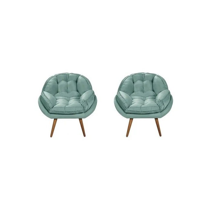 Kit 02 Poltrona Decorativa California Suede Tiffany Pés Palito - Fina Mobília Tiffany