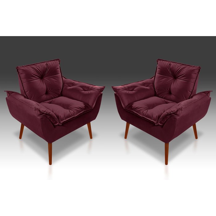 Kit 02 Poltrona Decorativa Opala Suede Bordô - Pandora Decor