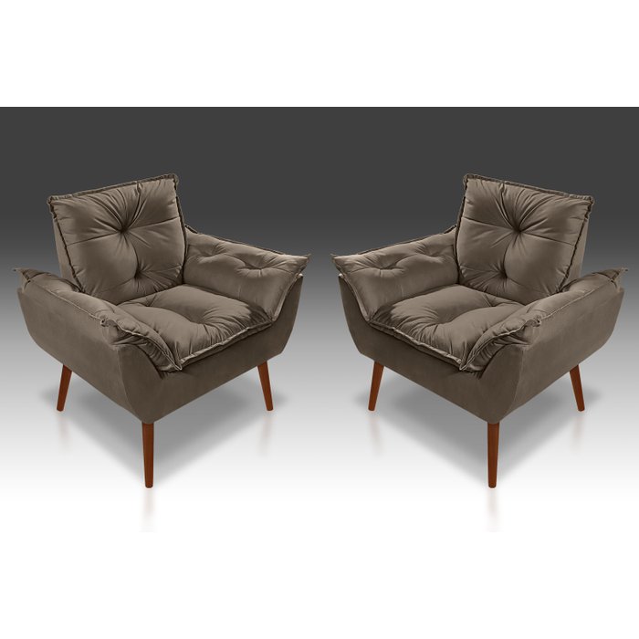 Kit 02 Poltrona Decorativa Opala Suede Marrom - Pandora Decor