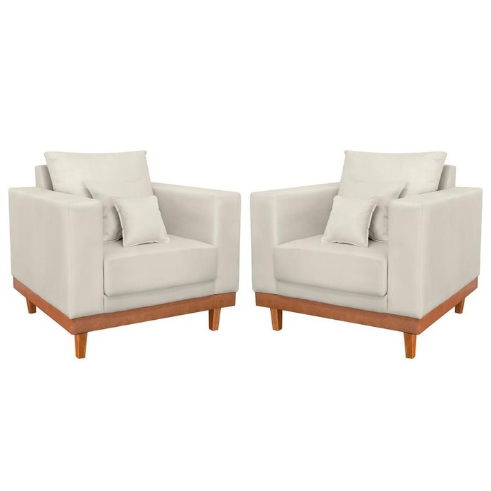 Kit 02 Poltrona Living Suede Base Madeira Sala Recepção Cor:bege bege