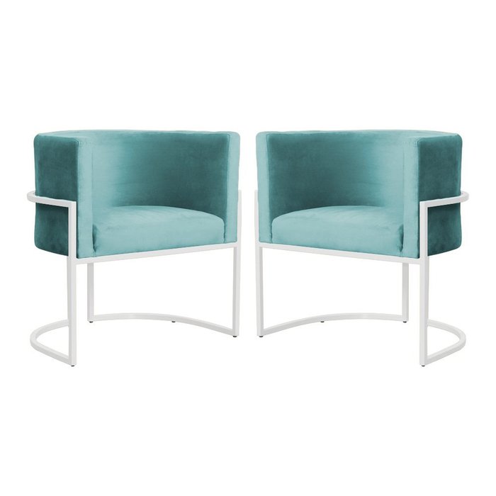 Kit 02 Poltrona Luana Veludo Azul Turquesa Base Branca - Fm