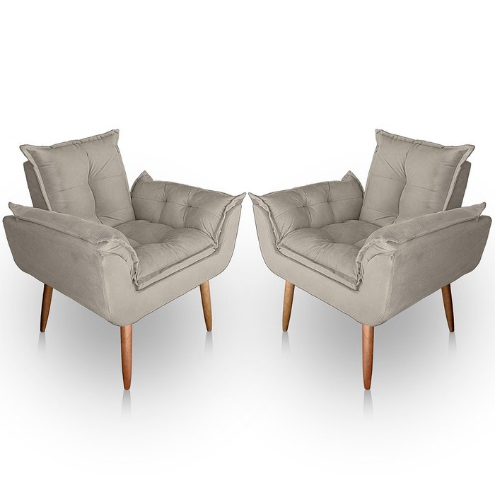 Kit 02 Poltrona para Sala e Quarto Decorativa Opala Suede Bege