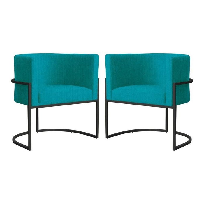 Kit 02 Poltrona Reforçada Pé Metálico Preto Azul Turquesa