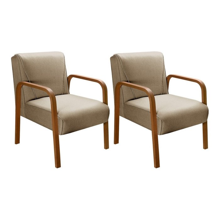 Kit 02 Poltronas Anita Cadeira Decorativa Recepção Escritório Quarto Sala - Linho Marrom
