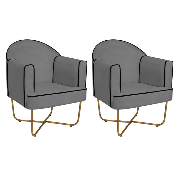Kit 02 Poltronas Athena Base X Dourada Suede Adj Decor Cinza