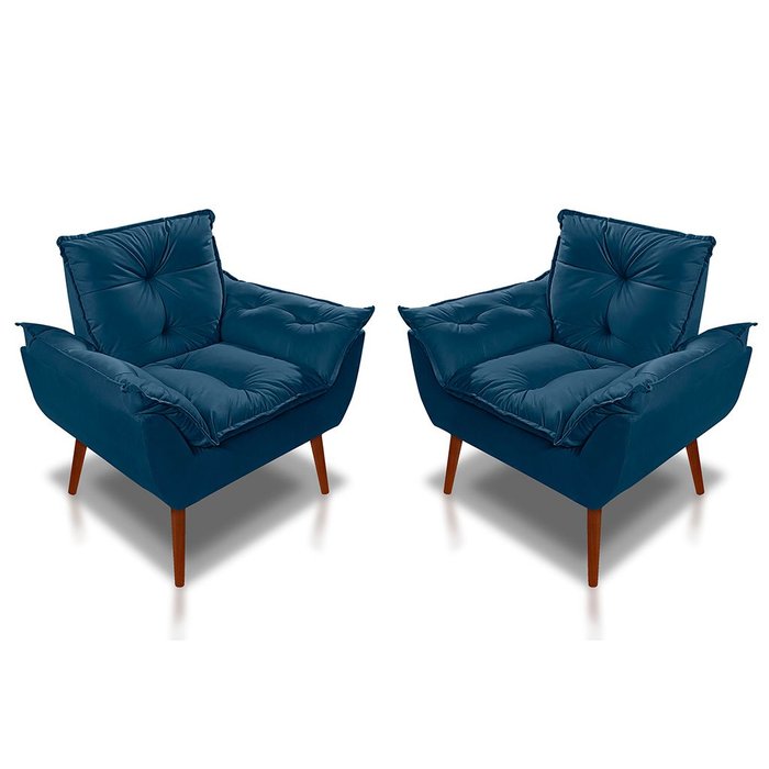 Kit 02 Poltronas D'luxo Opala Suede Azul Marinho - Pandora Decor