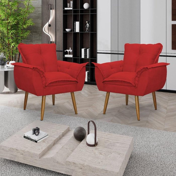 Kit 02 Poltronas Decorativas Opala Lux Sala Recepeção Vermelha - Visan Estofados