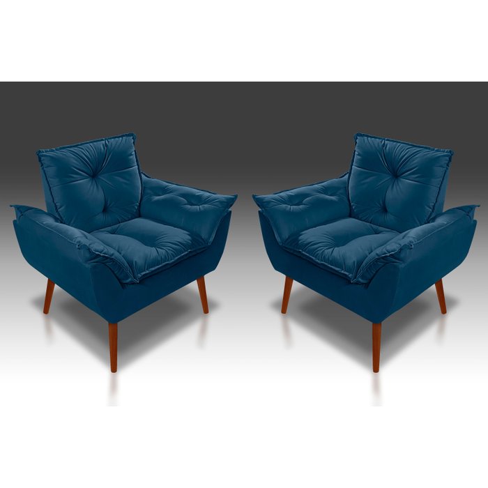 Kit 02 Poltronas Decorativas Opala Suede Azul Marinho - Pandora Decor