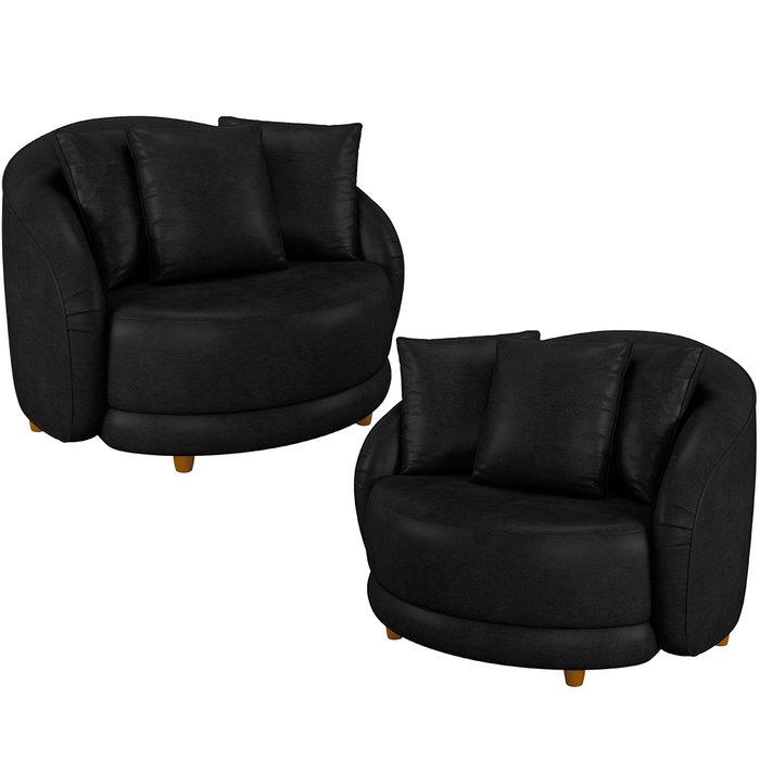 Kit 02 Poltronas Decorativas para Sala de Estar Base Fixa Pés Madeira Witta M03 Couríssimo Preto - L