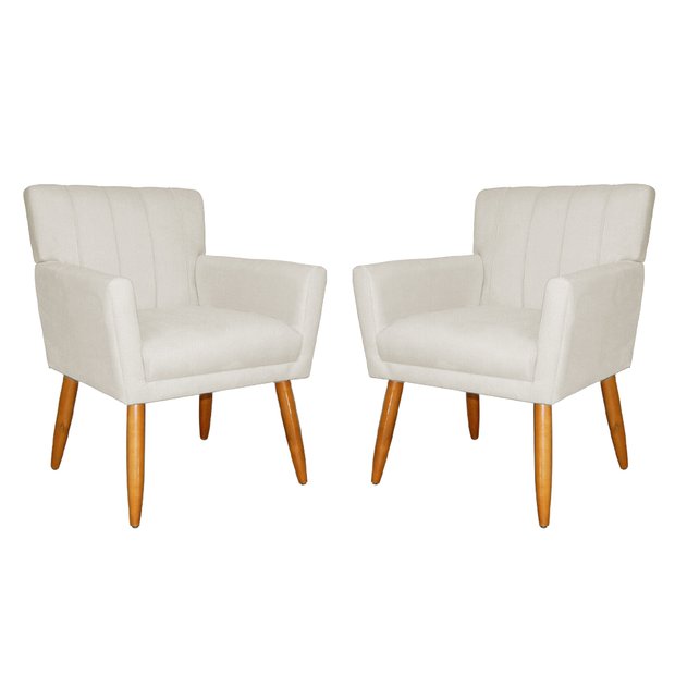 Kit 02 Poltronas Decorativas Sala Recepção Escritório Cadeira Estofada Cecilia Suede Bege