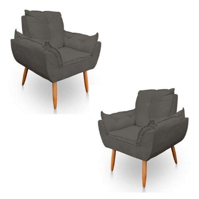 Kit 02 Poltronas Lais Sala de Estar Consultório Suede Cinza Grafite - D House Decor