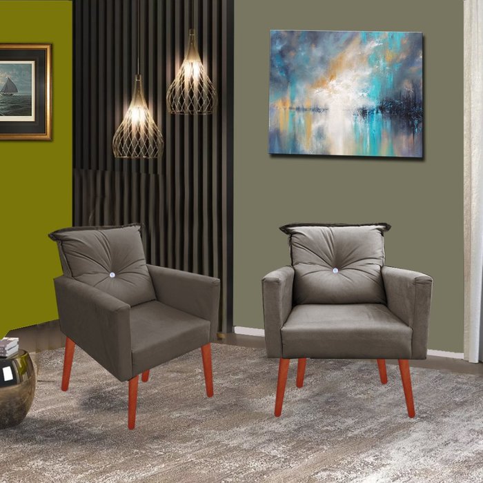 Kit 02 Poltronas Lara Decorativa Palito Luxo Tecido