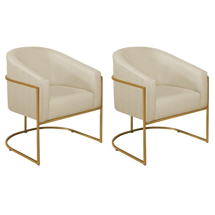 Kit 02 Poltronas Decorativas Sala De Estar Recepção Luiza Base De Ferro Dourado Suede - Adj Decor Cor Bege