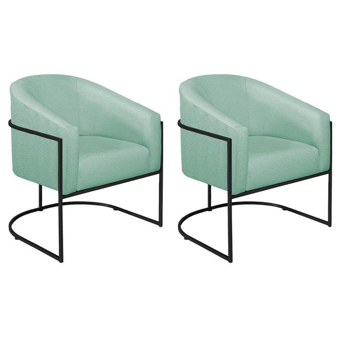 Kit 02 Poltronas Decorativas Sala De Estar Recepção Luiza Base De Ferro Preto Suede - Adj Decor Cor Azul Tiffany