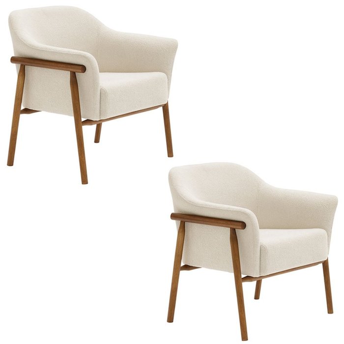 Kit 02 Poltronas Luna Base Madeira Bouclé Off White - Nexta Casa Off White