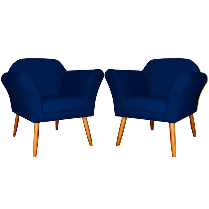 Kit 02 Poltronas Marcela Matelassê Suede Azul Marinho