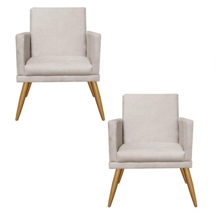 Kit 02 Poltronas Nina com Rodapé Bege com Pés Palito