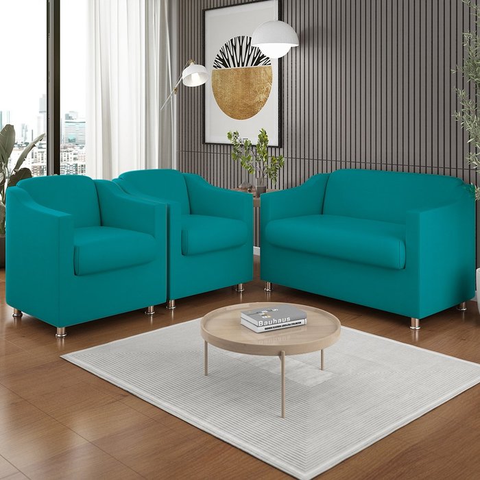 Kit 02 Poltronas Reforçada Clinica + Namoradeira Consultório Cor:Azul Turquesa Azul Turquesa