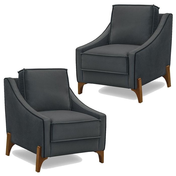 Kit 02 Poltronass Base Em Madeira Takumi Veludo Cinza Cinza
