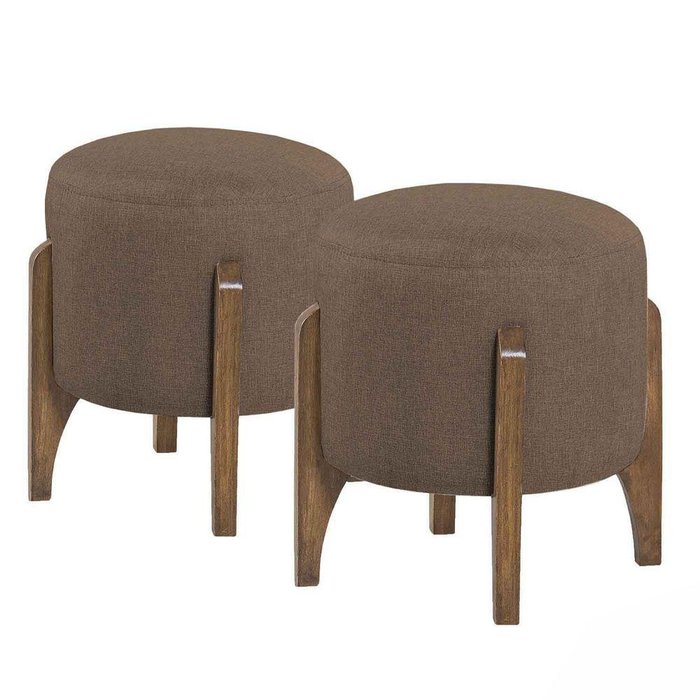Kit 02 Puff Decorativos Redondos - Pés Em Madeira - Escandinavo Cor Linho Marrom