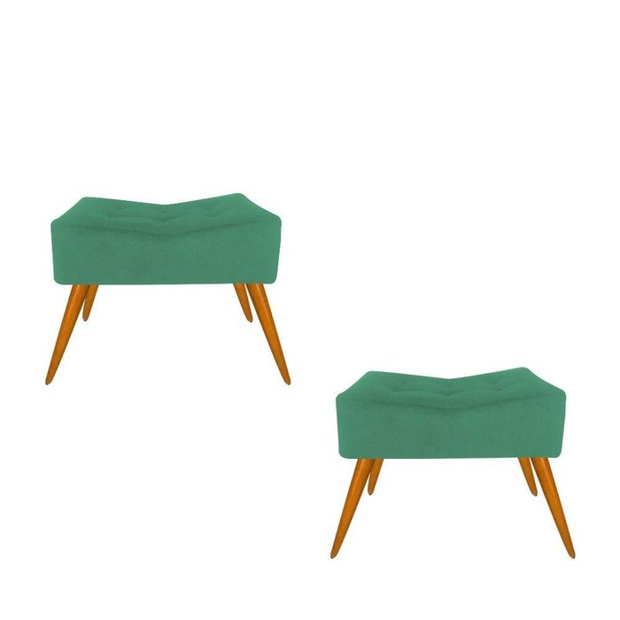 Kit 02 Puff Gabriela Suede Azul Tiffany Pés Palito - House