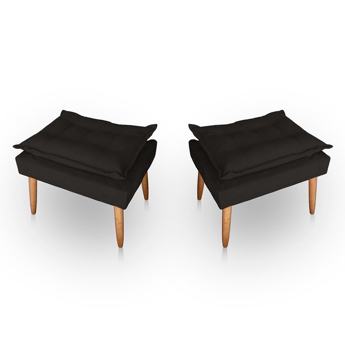 Kit 02 Puff para Sala e Quarto Madeira Decorativo Opala Suede Marrom