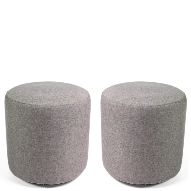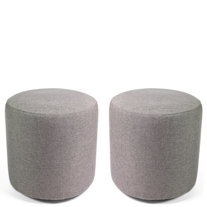 Kit 02 Puff Perse Decorativo Tecido Linho Banqueta Redondo Cinza
