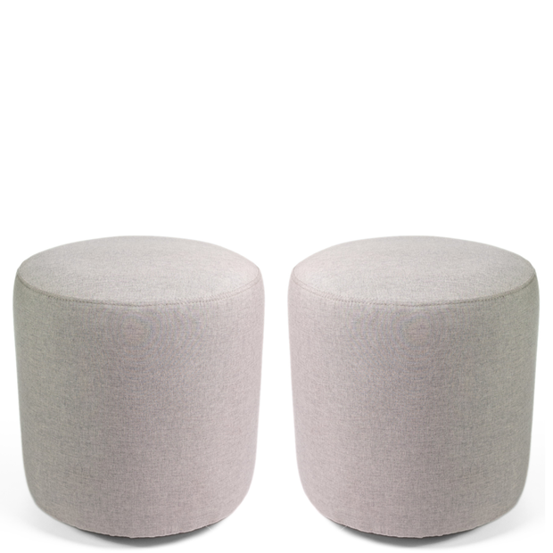 Kit 02 Puff Perse Decorativo Tecido Linho Banqueta Redondo Prata