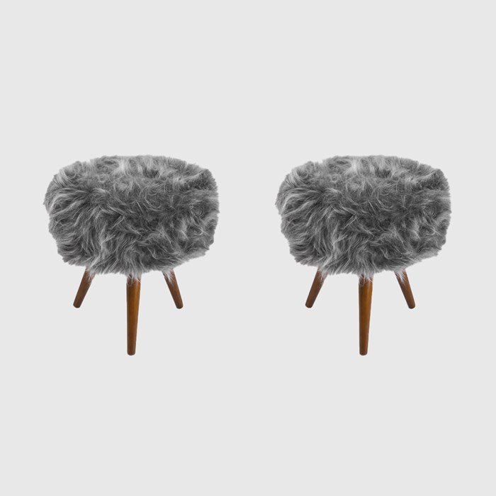Kit 02 Puff Puf Decorativo Tumir Pelo Sintetico Cinza Sone Cinza