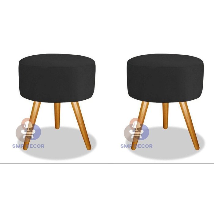 Kit 02 Puff Redondo Pés Palito Preto - Puff Redondo Pés Palito