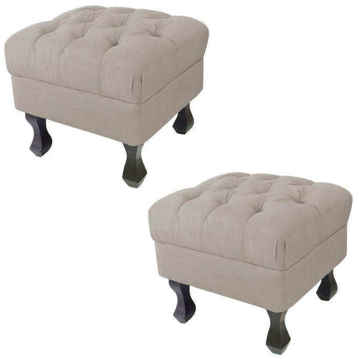 Kit 02 Puff Retrô Luis Xv Capitonê Suede Bege D´rossi
