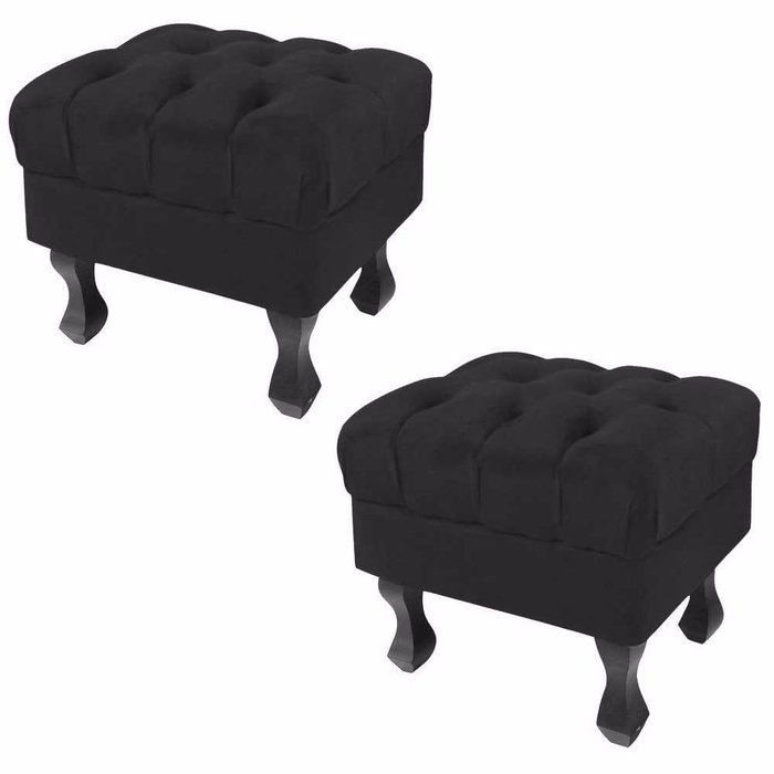 Kit 02 Puff Retrô Luis Xv Capitonê Suede Preto - D´rossi