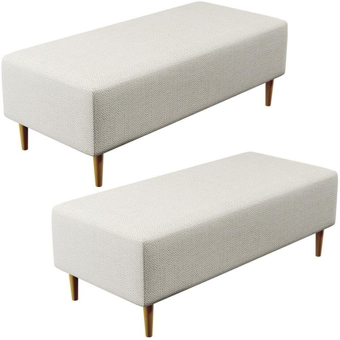 Kit 02 Puffs Decorativo Sala De Estar Bali W01 Pés Palito 120x50 Cm Linho Champagne - Lyam Decor